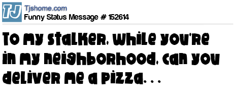 X says To my stalker, while you're in my neighborhood, can you deliver me a pizza. . .