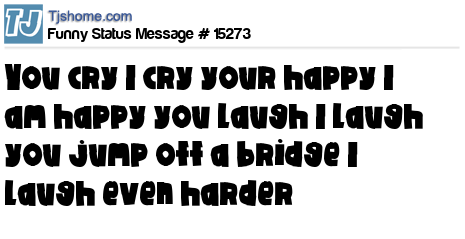 - # 13490 you cry, I cry; you laugh, I laugh; but when you jump off a bridge into a lake... i'll be ready with the boat :D