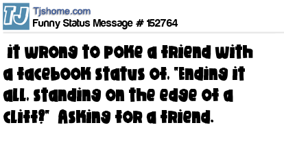 X it wrong to poke a friend with a facebook status of, "Ending it all, standing on the edge of a cliff?" Asking for a friend.