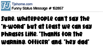 - # 158680 White people may not be able to say a certain word but we can say "Thanks for the warning, officer" and "Hi, Dad".