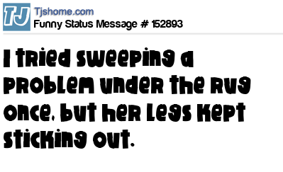 X says I tried sweeping a problem under the rug once, but her legs kept sticking out.