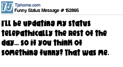X says I'll be updating my status telepathically the rest of the day... so if you think of something funny? That was me.
