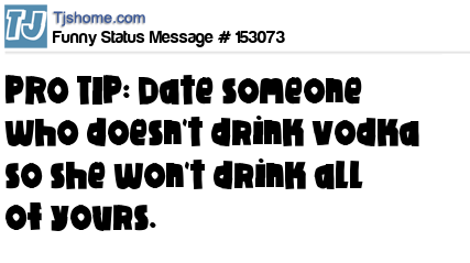 X says PRO TIP: Date someone who doesn't drink vodka so she won't drink all of yours.