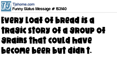 - # 157875 Every loaf of bread is a tragic story about grains of wheat that could've become beer, but didn't.