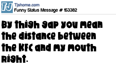 X says By thigh gap you mean the distance between the KFC and my mouth right.