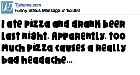 X I ate pizza and drank beer last night. Apparently, too much pizza causes a really bad headache...