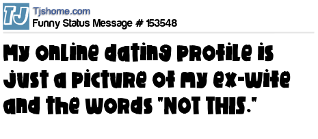 X says My online dating profile is just a picture of my ex-wife and the words "NOT THIS."