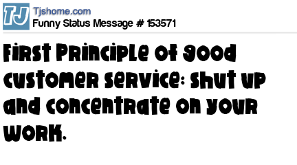 X First Principle of good customer service: shut up and concentrate on your work.