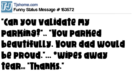 X "Can you validate my parking?".. "You parked beautifully. Your dad would be proud."... *wipes away tear,,, "Thanks."