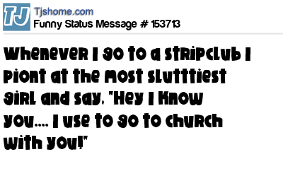 X Whenever I go to a stripclub I piont at the most slutttiest girl and say, "Hey I know you.... I use to go to church with you!"