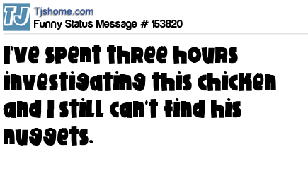 X says I've spent three hours investigating this chicken and I still can't find his nuggets.