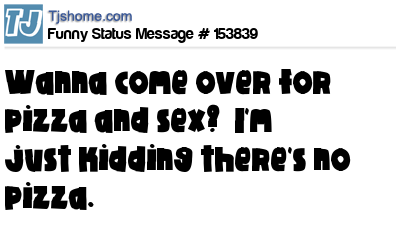 X says Wanna come over for pizza and sex? I'm just kidding there's no pizza.