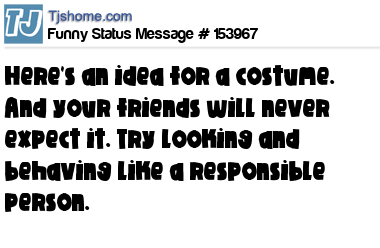 X says Here's an idea for a costume. And your friends will never expect it. Try looking and behaving like a responsible person.