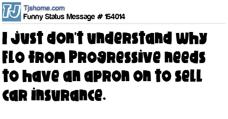 - # 175510 Why does Flo from Progressive needs to have an apron on to sell insurance. Is there something dirty about insurance we should know about?
