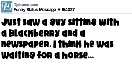 X Just saw a guy sitting with a Blackberry and a newspaper. I think he was waiting for a horse...