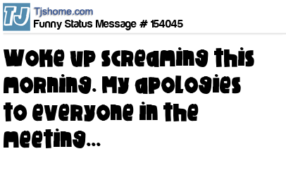 - # 154051 Woke up screaming Sunday morning. My apologies to everyone at church...