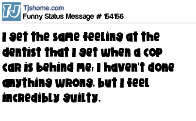 X says I get the same feeling at the dentist that I get when a cop car is behind me; I haven't done anything wrong, but I feel incredibly guilty.