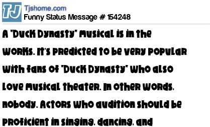 X says A "Duck Dynasty" musical is in the works. It's predicted to be very popular with fans of "Duck Dynasty" who also love musical theater. In other words, nobody. Actors who audition should be proficient in singing, dancing, and hiding their sexual orientatio