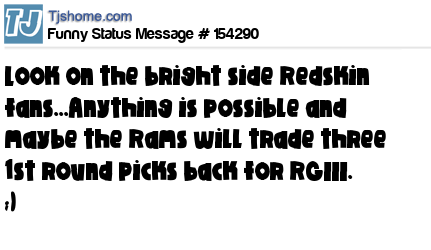 X says Look on the bright side Redskin fans...Anything is possible and maybe the Rams will trade three 1st round picks back for RGIII. ;)