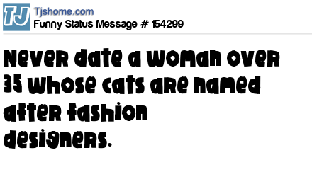 X says Never date a woman over 35 whose cats are named after fashion designers.