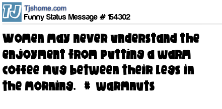 X says Women may never understand the enjoyment from putting a warm coffee mug between their legs in the morning. #warmnuts