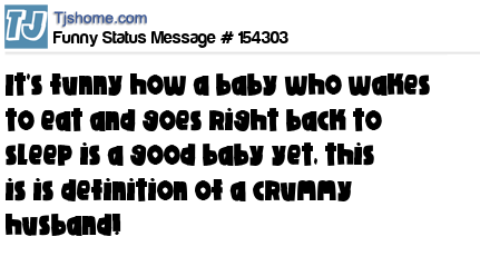 X says It's funny how a baby who wakes to eat and goes right back to sleep is a good baby yet, this is is definition of a crummy husband!