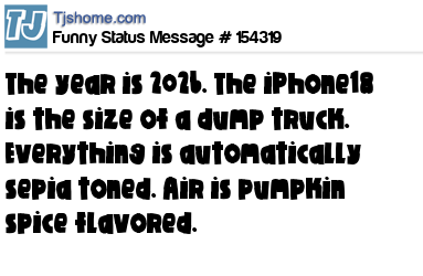 X says The year is 2026. The iPhone18 is the size of a dump truck. Everything is automatically sepia toned. Air is pumpkin spice flavored.
