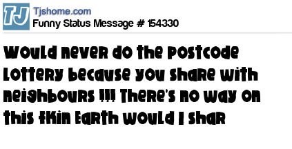 X says Would never do the postcode lottery because you share with neighbours !!! There's no way on this fkin Earth would I shar