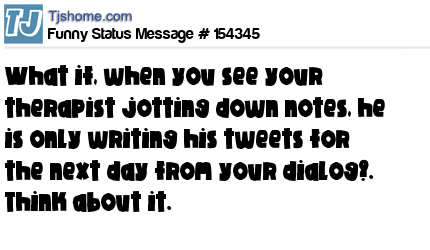 X says What if, when you see your therapist jotting down notes, he is only writing his tweets for the next day from your dialog?. Think about it.