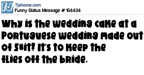 X why is the wedding cake at a Portuguese wedding made out of S#it? It's to keep the flies off the bride.
