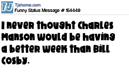 X I never thought Charles Manson would be having a better week than Bill Cosby.