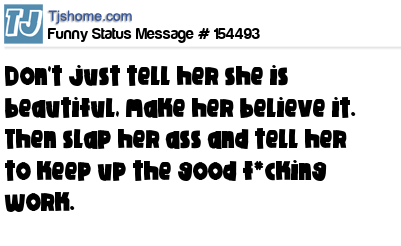 X says Don't just tell her she is beautiful, make her believe it. Then slap her ass and tell her to keep up the good f*cking work.