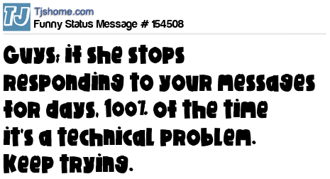 X says Guys; if she stops responding to your messages for days, 100% of the time it's a technical problem. Keep trying.