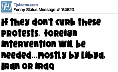 X says if they don't curb these protests, foreign intervention Wil be needed...mostly by Libya, Iran or iraq