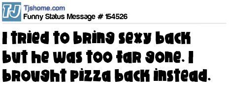 X says I tried to bring sexy back but he was too far gone. I brought pizza back instead.