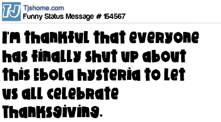 X I'm thankful that everyone has finally shut up about this Ebola hysteria to let us all celebrate Thanksgiving.