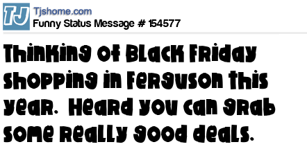 - # 154465 Am I the only one hoping that grand jury decision in Ferguson Missouri lines up with my black Friday shopping plans?