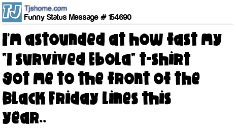 X I'm astounded at how fast my "I survived Ebola" t-shirt got me to the front of the Black Friday lines this year..