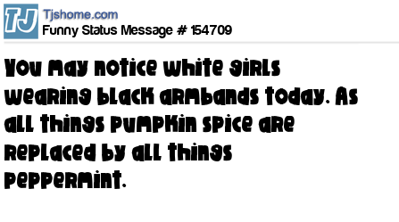 X says You may notice white girls wearing black armbands today. As all things pumpkin spice are replaced by all things peppermint.