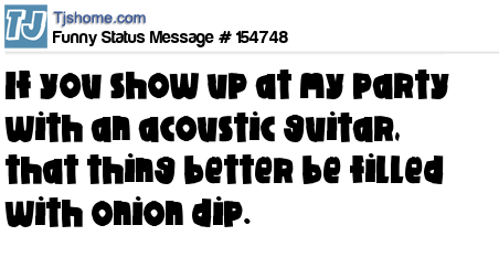 X says If you show up at my party with an acoustic guitar, that thing better be filled with onion dip.