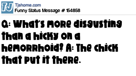 X says Q: What's more disgusting than a hicky on a hemorrhoid? A: The chick that put it there.