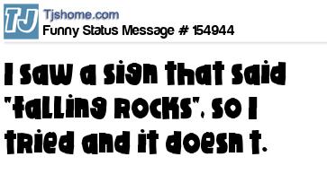 - # 80729 I saw a sign that said "Falling Rocks"....I tried it.....it doesn't.