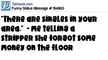 X says "There are singles in your area." - me telling a stripper she forgot some money on the floor
