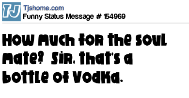 X says How much for the soul mate? Sir, that's a bottle of Vodka.