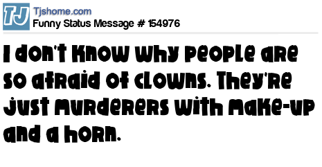X says I don't know why people are so afraid of clowns. They're just murderers with make-up and a horn.