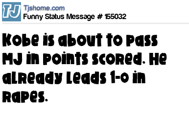 X Kobe is about to pass MJ in points scored. He already leads 1-0 in rapes.