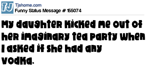 X says My daughter kicked me out of her imaginary tea party when I asked if she had any vodka.