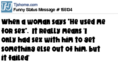 - # 155278 When a woman says "He used me for sex". It really means 'I only shagged him to get something else out of him, but it failed'.