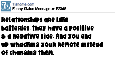 X says Relationships are like batteries, they have a positive & a negative side. And you end up whacking your remote instead of changing them.