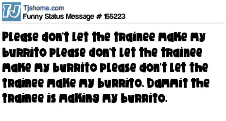 X says Please don't let the trainee make my burrito please don't let the trainee make my burrito please don't let the trainee make my burrito. Dammit the trainee is making my burrito.
